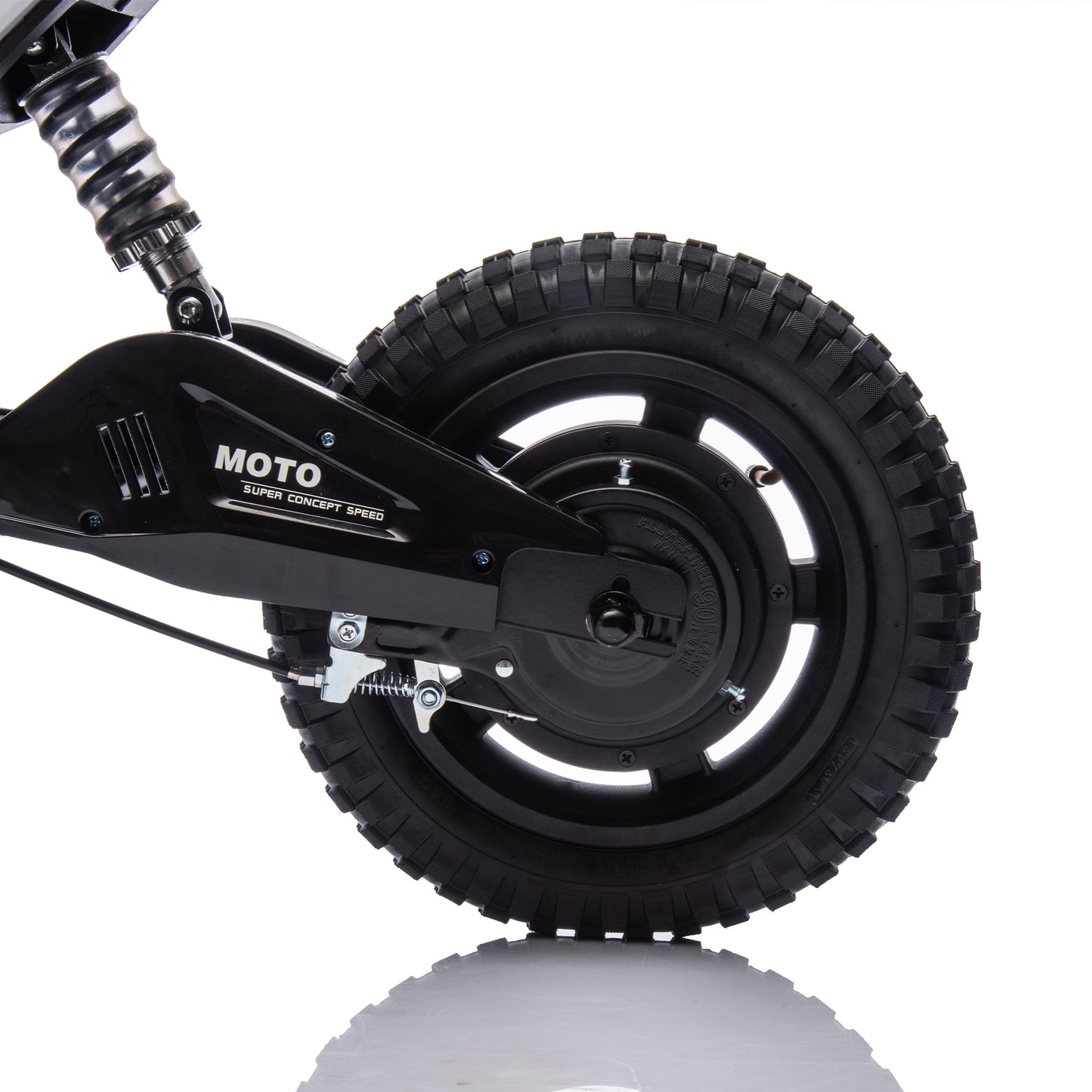 24V Kids Ride On Electric Toy Motocross Motorcycle,200W High Speed Hub Motor,Rear wheel shock absorber,Adjustable speed,LED breath lamp,Bluetooth,Music,Horn,Speeds 3.11-9.32MPH For Kids Aged 5-15.