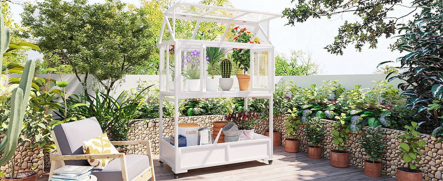 - [Multifunctional Design with Storage] This greenhouse doubles as a storage solution with a spacious bottom box (23.6”L) for organizing gardening tools, pots, and supplies. Its versatile design supports year-round use, from frost protection in winter to shading delicate plants in summer.