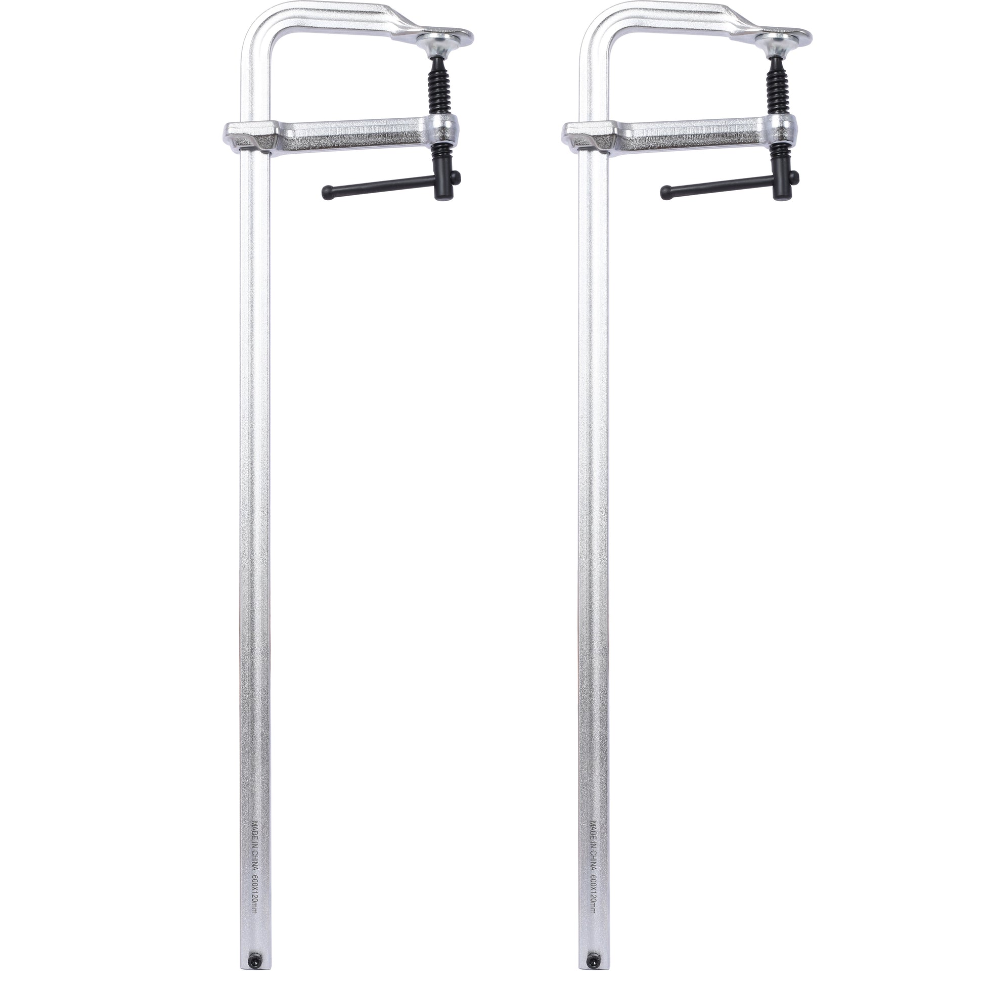 - The F-clamp is expertly crafted from drop-forged 40 Cr alloy steel, offering exceptional strength and resilience. This high-quality construction ensures outstanding durability, making it the ideal tool for heavy-duty woodworking and metalworking projects. Max jaw opening: 24'/600mm; Throat depth: 4 3/4'/120mm; Clamping force: 1400 lbs.