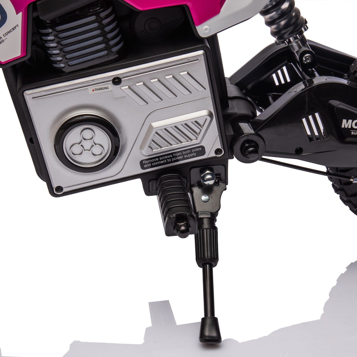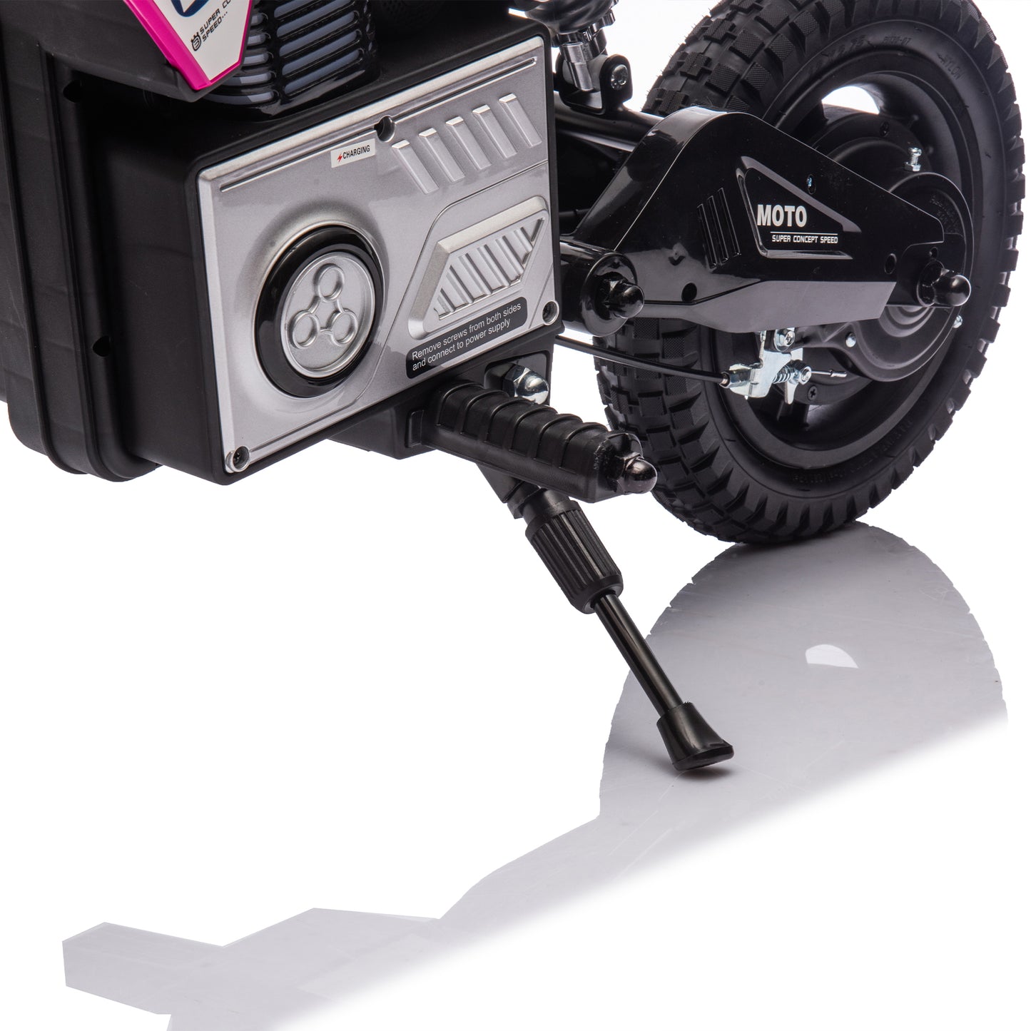 24V Kids Ride On Electric Toy Motocross Motorcycle,200W High Speed Hub Motor,Rear wheel shock absorber,Adjustable speed,LED breath lamp,Bluetooth,Music,Horn,Speeds 3.11-9.32MPH For Kids Aged 5-15.