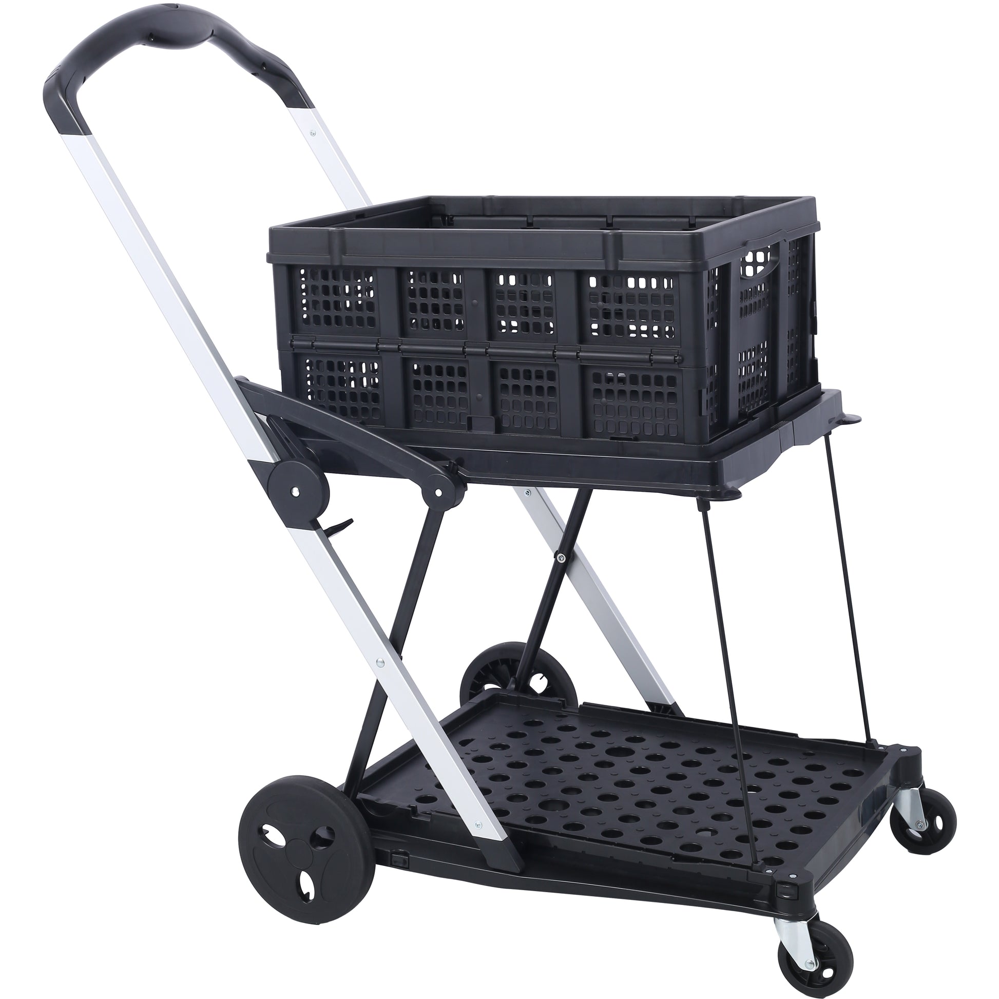 Collapsible Utility Cart Multi Use Functional Collapsible Shopping Carts 2-Tier Collapsible Shopping Cart with Baskets Carrito para Supermercado con Ruedas
