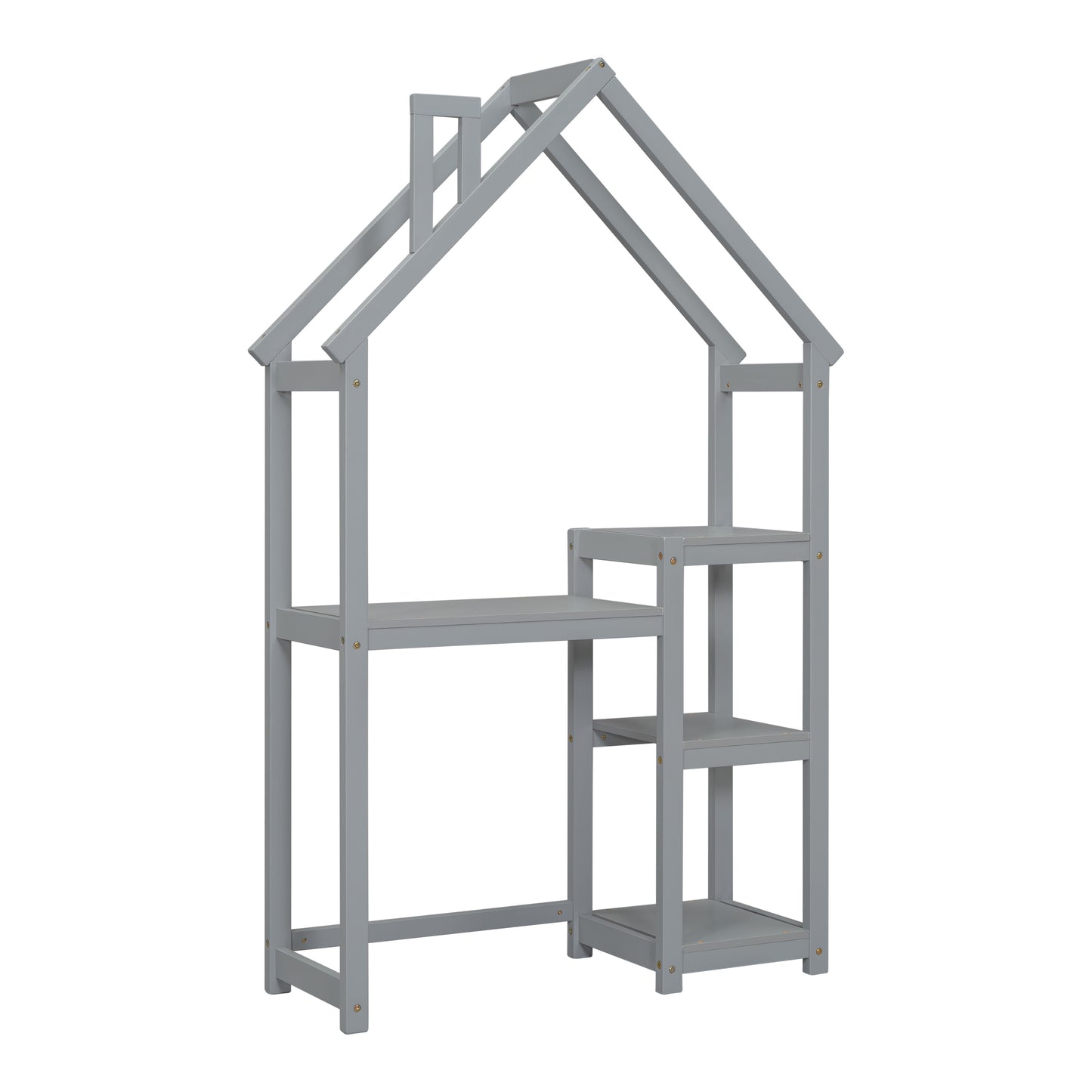 House-shaped Wooden writing Desk,Kids study Table,Bookshelf & Toy Storage,Grey