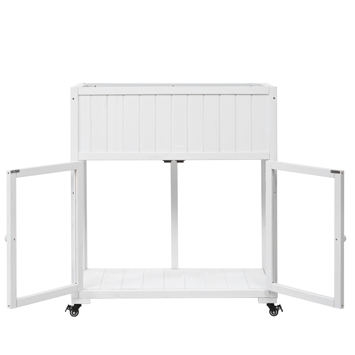 Patio 35.4''x17.7''x37.4'' Mini Wood Cold Frame, Compact 2 Doors Garden Greenhouse with Wheels, Raised Bed with Liner for Indoor Outdoor Use, White