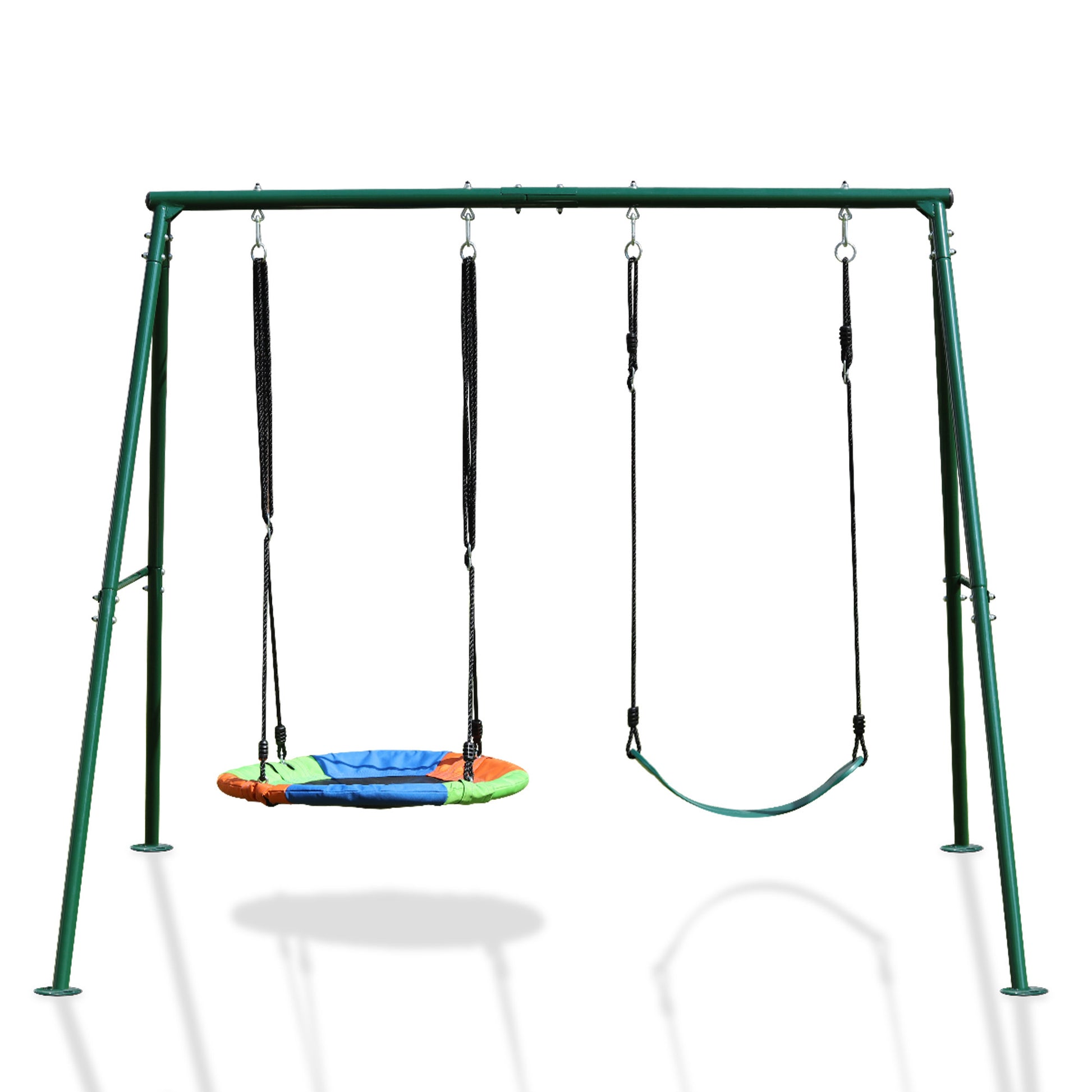 - Safe and Solid Build – Crafted with a sturdy steel A-frame, this swing set can hold up to 440 lbs, ensuring a secure and enjoyable swinging experience for your kids.