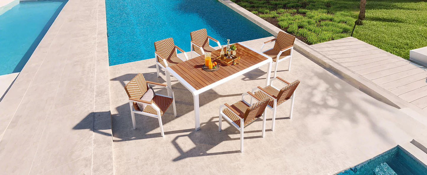 - 7-Piece Dining Chair Set: This patio dining set includes an acacia wood table and 6 ergonomic rattan dining chairs. It blends seamlessly into any outdoor setting, bringing charm and elegance to outdoor dining.