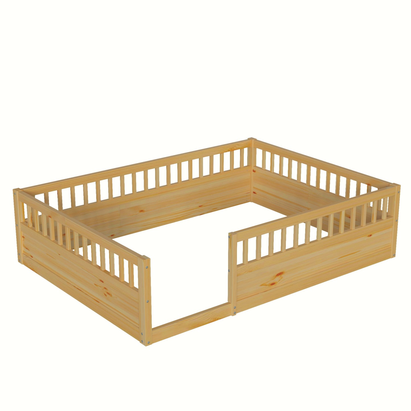 Full Floor Bed Frame with Fence, Wood Kids Floor Beds Frame for Bedroom Playroom,Natural(Expect arrive date Jul. 10th)